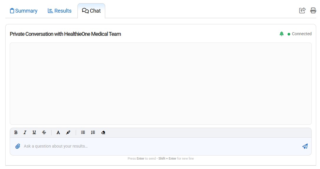 Since we are not your primary care provider, our consultations focus on HealthieOne result interpretation and recommendations. We can: